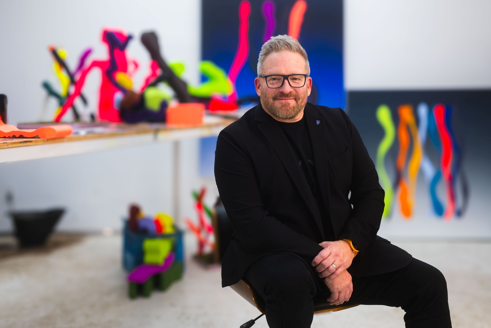 My work lives at the intersection of painting and sculpture, where form, color, and structure work together to explore the human condition. At first glance, the pieces may feel bright, balanced, even harmonious. But embedded within them, beneath saturated palettes or carefully weighted constructions, are layers of pain, loss, and complexity. Just as life isn’t flat, neither is my work. It’s layered, filtered, and sometimes disguised, mirroring a culture obsessed with perfection and appearances. Where the viewer is drawn depends entirely on how deep they’re willing to go.